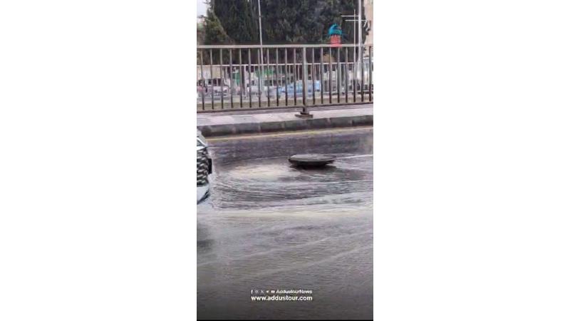 انسداد منهل صرف صحي كاد أن يتسبب بكارثة في إحدى شوارع عمان (فيديو)