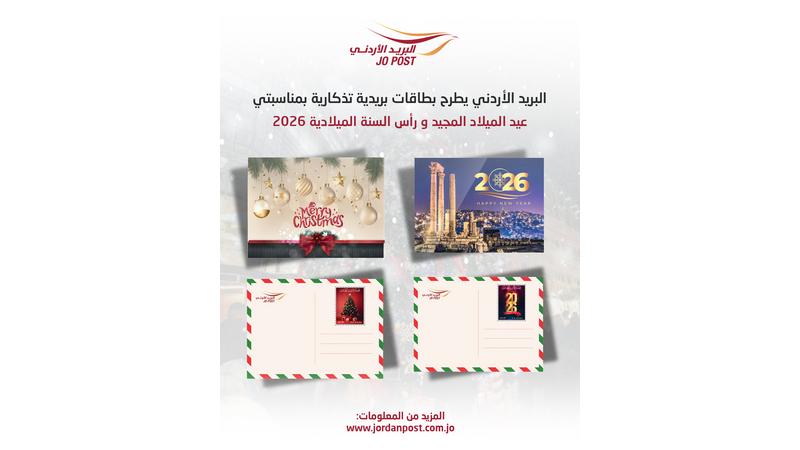 البريد الأردني يطرح بطاقات بريدية تذكارية بمناسبتي عيد الميلاد المجيد ورأس السنة الميلادية