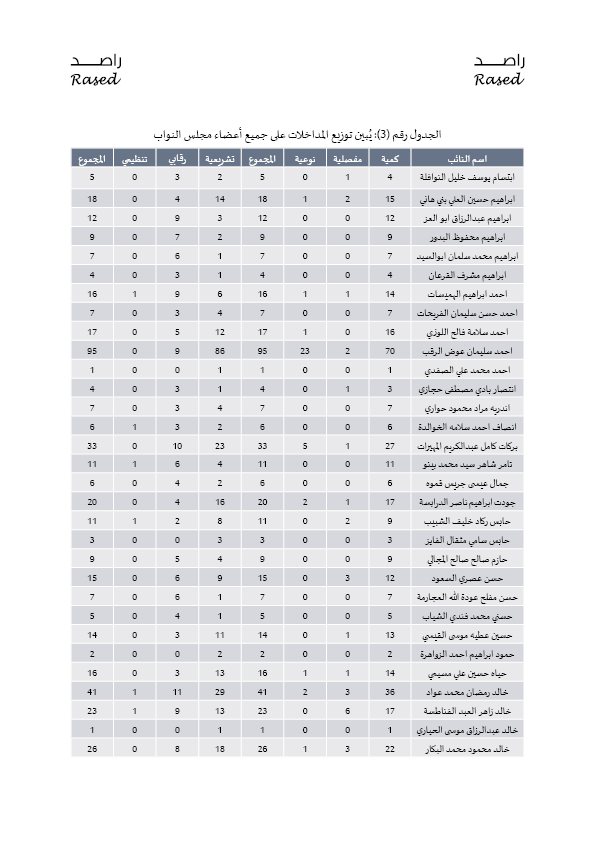 وتاليا جداول تبين مداخلات النواب في عامهم الثالث: