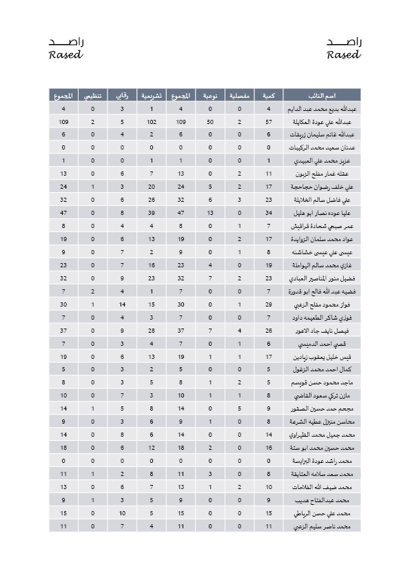كشف تقرير راصد حول مداخلات النواب وغيابهم عن الجلسات في عامهم الثالث عدم تسجيل 4 نواب أي مداخلة خلال سنة.