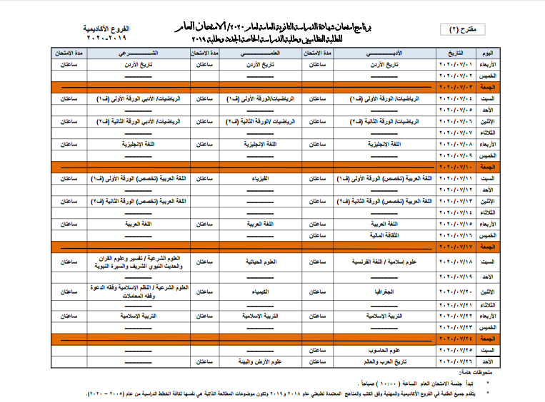 أطلقت وزارة التربية والتعليم اليوم الأحد، ثلاثة مقترحات لبرنامج الامتحان العام لشهادة الدراسة الثانوية العامة للفروع الأكاديمية والمهنية لعام 2020.
