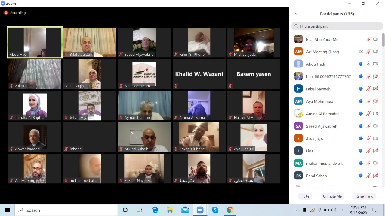 جاء ذلك خلال لقاء نظم من قبل غرفة صناعة الاردن وعمان ومجلس السيدات الصناعيات من خلال تقنية ZOOM والحديث حول الخدمات والمزايا التي تقدمها هيئة الاستثمار للقطاع الصناعي، حيث حضر اللقاء رئيس غرفتي صناعة الاردن وعمان المهندس فتحي الجغبير ونائب رئيس غرفة صناعة الاردن ورئيس غرفة صناعة اربد السيد هاني ابو حسان ونائب رئيس مجلس السيدات الصناعيات الدكتوره ريم بغدادي وعدد كبير من الصناعيين في كافة أنحاء المملكة.