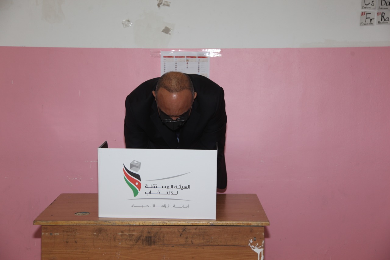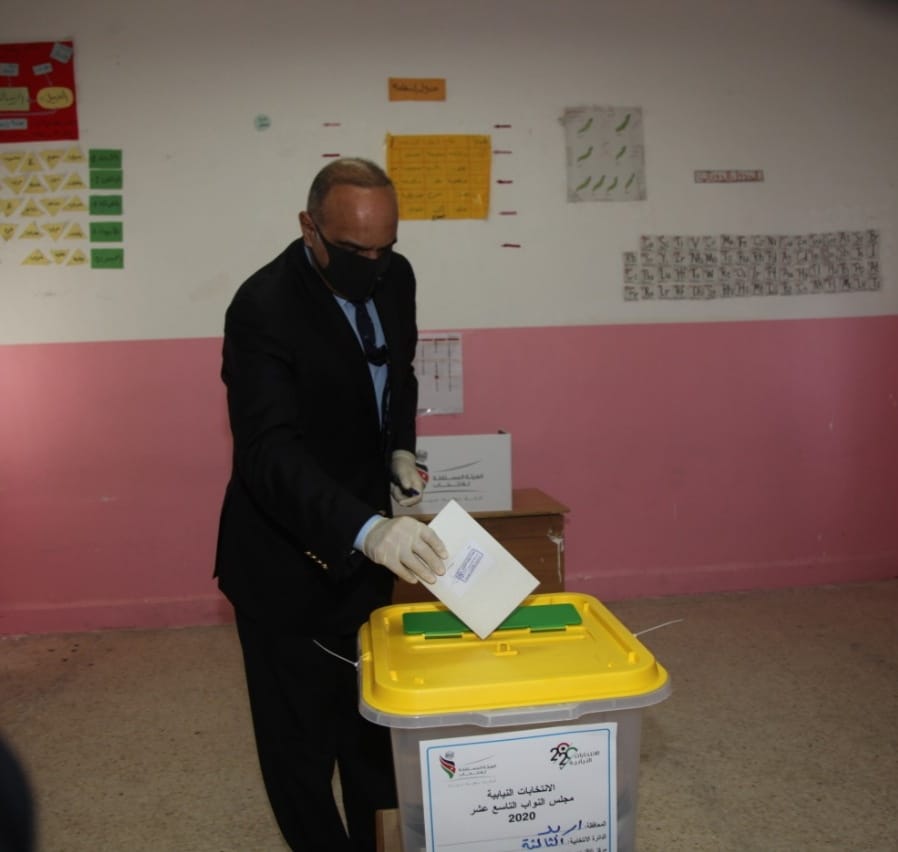 ادلى رئيس الوزراء الدكتور بشر الخصاونة، بصوته بالانتخابات النيابية في مدرسة حفصة بنت عمر بمنطقة ايدون في اربد.