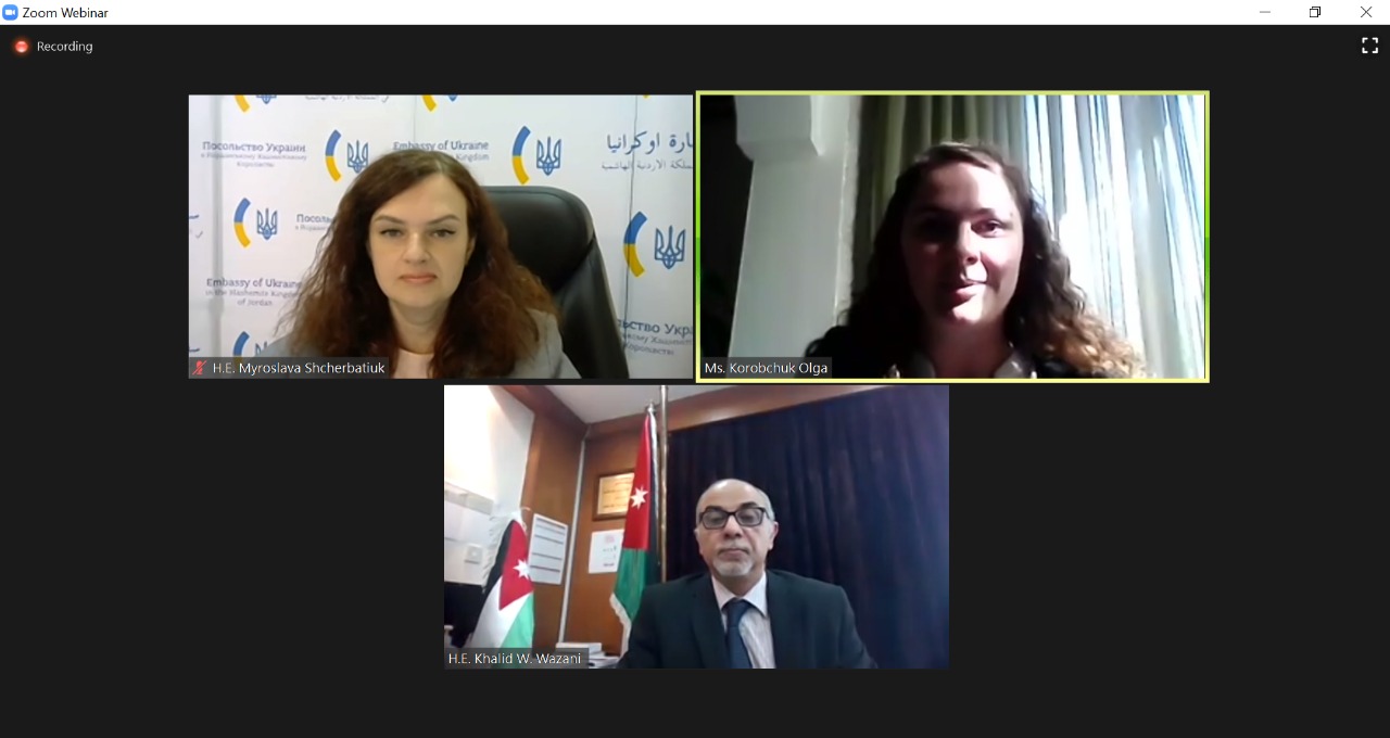 جاء ذلك خلال لقاء نظمته هيئة الإستثمار وسفارة دولة أوكرانيا لدى الاردن عن بعد مع مجموعة من الشركات الأوكرانية المهتمة بالإستثمار في الأردن وبحضور سفيرة جمهورية أوكرانيا لدى المملكة ميروسلافا شيرباتيوك وممثلين من مكتب الإستثمار الأجنبي الأوكراني وممثلين من وزارة الخارجية الأوكرانية وامين عام هيئة الإستثمار فريدون حرتوقه.