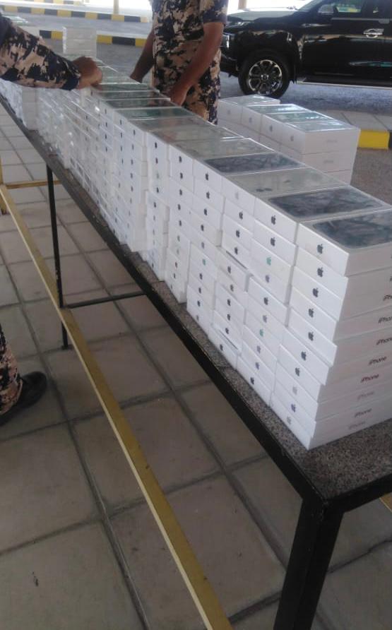 خلوية نوع "ايفون" بعدد (205) وساعات بعدد (14) وسماعات بعدد (75).