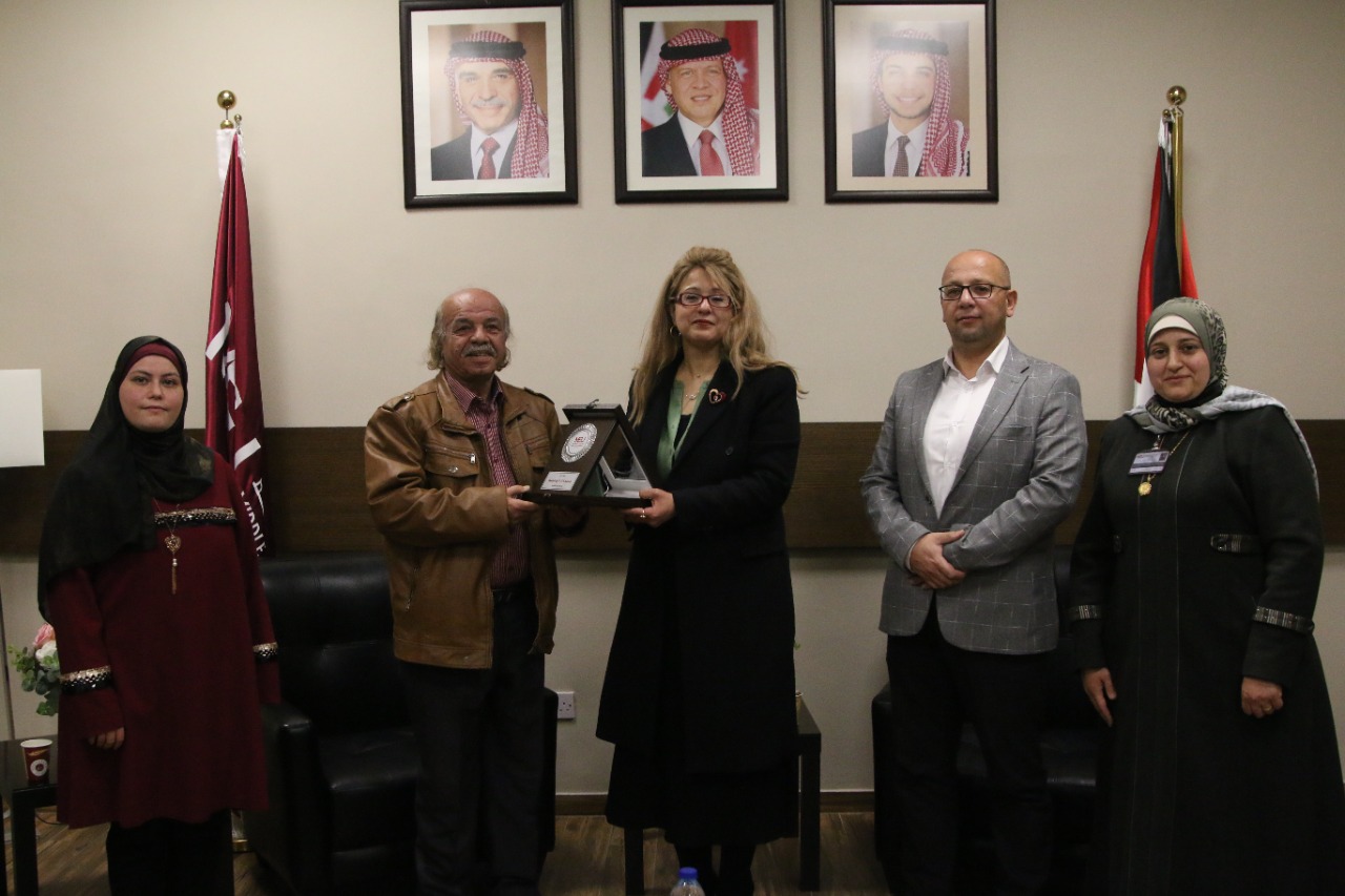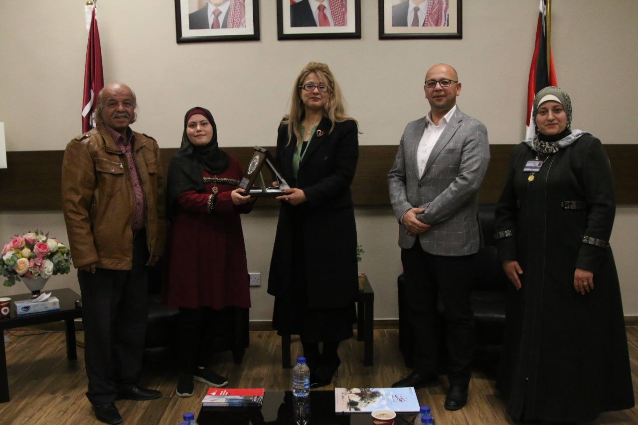 المحادين، بحضور عميد كلية الآداب والعلوم الأستاذ الدكتور أحمد موسى، درع الجامعة