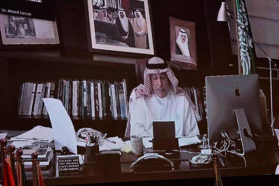 •وتحدث ايضا "عبر زووم" معالي الاستاذ الدكتور عيسى بن حسن الانصاري مدير جامعة الامير محمد بن فهد رئيس الدورة 53 لاتحاد الجامعات العربية موجها التحية لجامعة عمان الاهلية وللمملكة الاردنية لاستضافتهم الدورة 54 للاتحاد الجامعات العربية مؤكدا أهمية استمرار منجزات الدورة السابقة ، مذكرا بأهمية تلك المنجزات ومنها : المجلس العربي للشباب وبرنامج المنح الدراسية وجائزة الامير محمد بن فهد لأفضل انتاج علمي ( 250000 دولار) مؤكدا على استمرار جامعة الامير محمد بن فهد في دعم الاتحاد لخدمة التعليم العالي والبحث العلمي .
