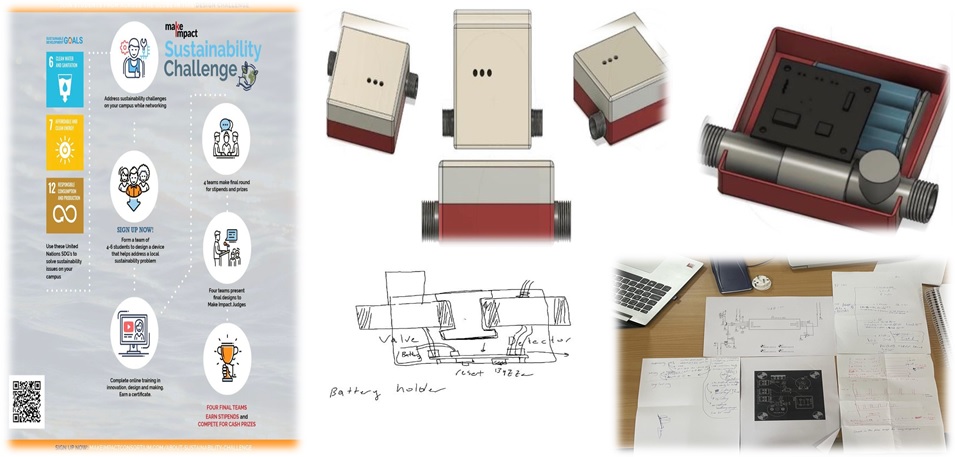 ويتكون الفريق الفائز من الطلبة مروه فرحان (هندسة طبية) ودانه دنون (هندسة طبية) ورنيم الحارس (صيدلة) ومحمد حسن (هندسة طبية)، حيث يعمل مشروعهم على تصميم منتج بكاشف معدل التدفق وجهاز تحكم لفحص تسرب المياه خلال فترة زمنية قصيرة. عند اكتشاف تسرب، يقوم صمام الملف اللولبي (والذي يكون مفتوحًا عادةً) بإغلاق الماء على الفور وتشغيل إنذار لتنبيه المستخدم بالتسرب ومكانه.