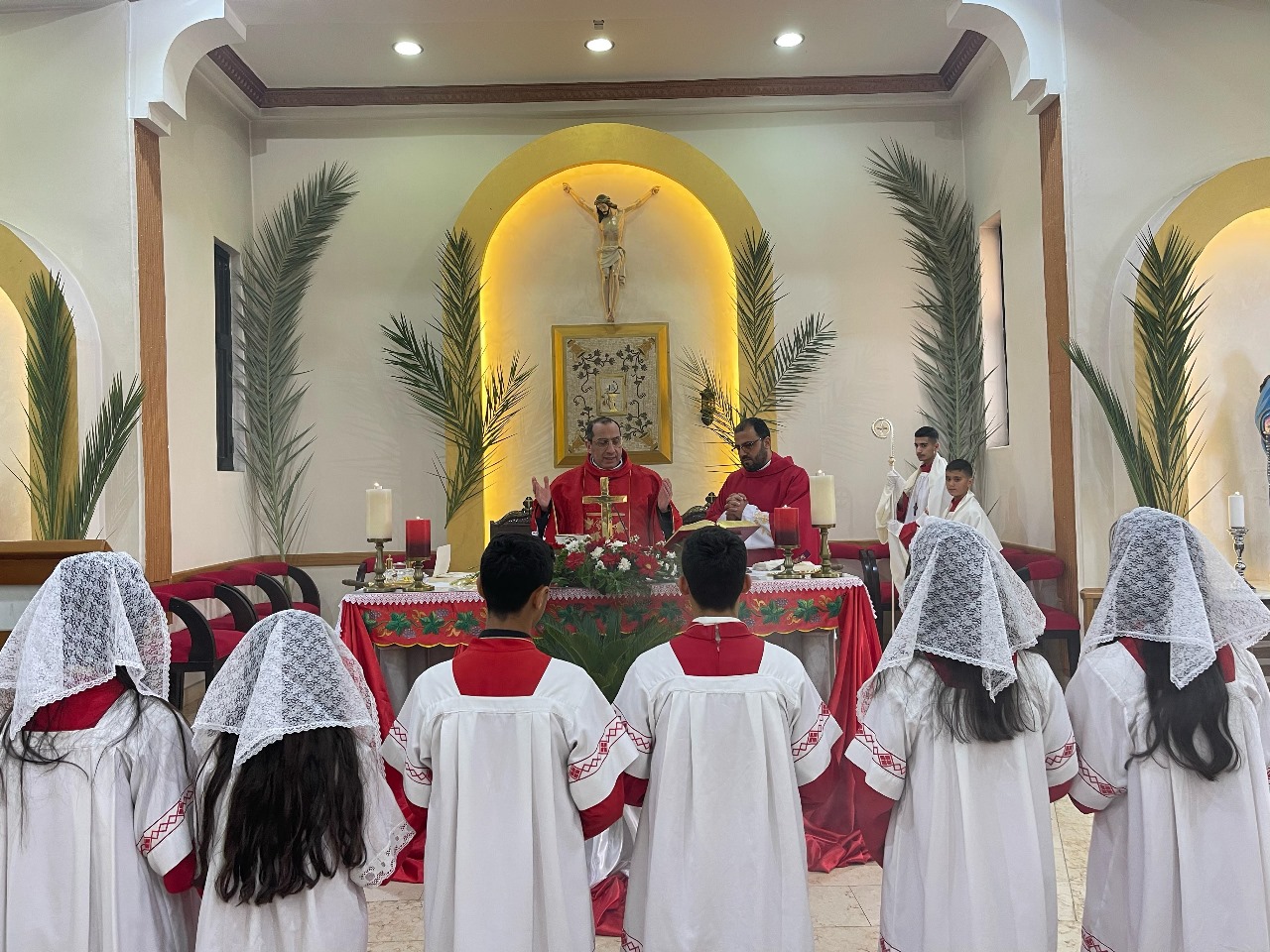 وفي العين الأخرى، تابع الأب بدر، إنّنا ننظر إلى القدس، ونتطلّع إلى الأيام التي دخلها السيّد المسيح اليوم مبشرًا إياها بأيام سلام وعدالة، ولكنه في نفس الوقت بكى على القدس لأنها لم تعرف طريق السلام، وهي إلى الآن لم تتذوق طعم السلام والعدالة الذي جاء السيّد المسيح ينشرهما على هذه الأرض. وقال أنّنا نتطلّع أيضًا بعيون الرجاء إلى غزة، من أجل وقف إطلاق النار وإراقة الدماء، وإشاعة أجواء من السلام وبالأخص للأطفال والفتيان الذين يتطلّعون إلى قيم العدالة والمحبّة والسلام.