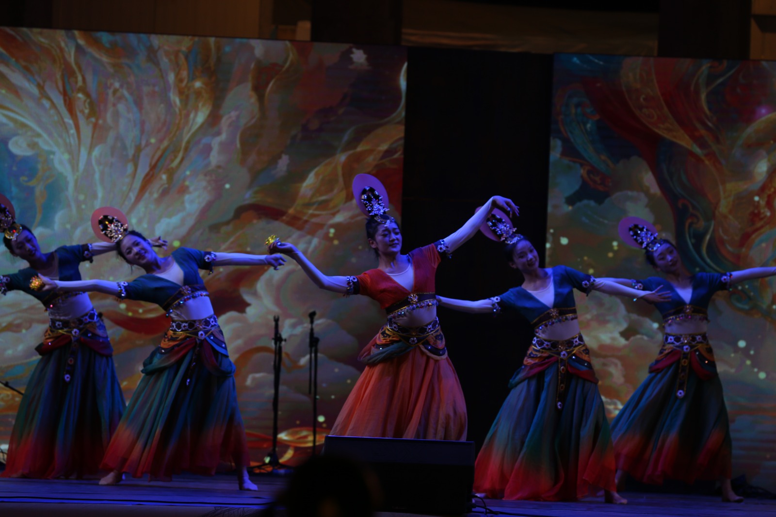 وبعزف منفرد لآلة الإرهو "سباق الخيول " العازفة ليو جيون اكتملت فقرات العرض واتبعوها برقصة " الظلال الرشيقة " للمؤدون : قاو هوي هوي ، ما شين يوي، تشن هوي لين، باي تسي روي الذين نقلوا حضارتهم بابداع فني متميز.
