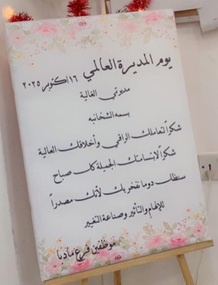 نشكرها على دعمها الدائم وعلى إيمانها العميق بقدراتنا، وثقتها بأن التميّز لا يتحقق إلا بروح الفريق الواحد كل عام ومديرتنا العزيزة بسمه الشخانبة بخير، وكل عام وهي عنوان للقيادة المسؤولة والإنسانية الراقية.