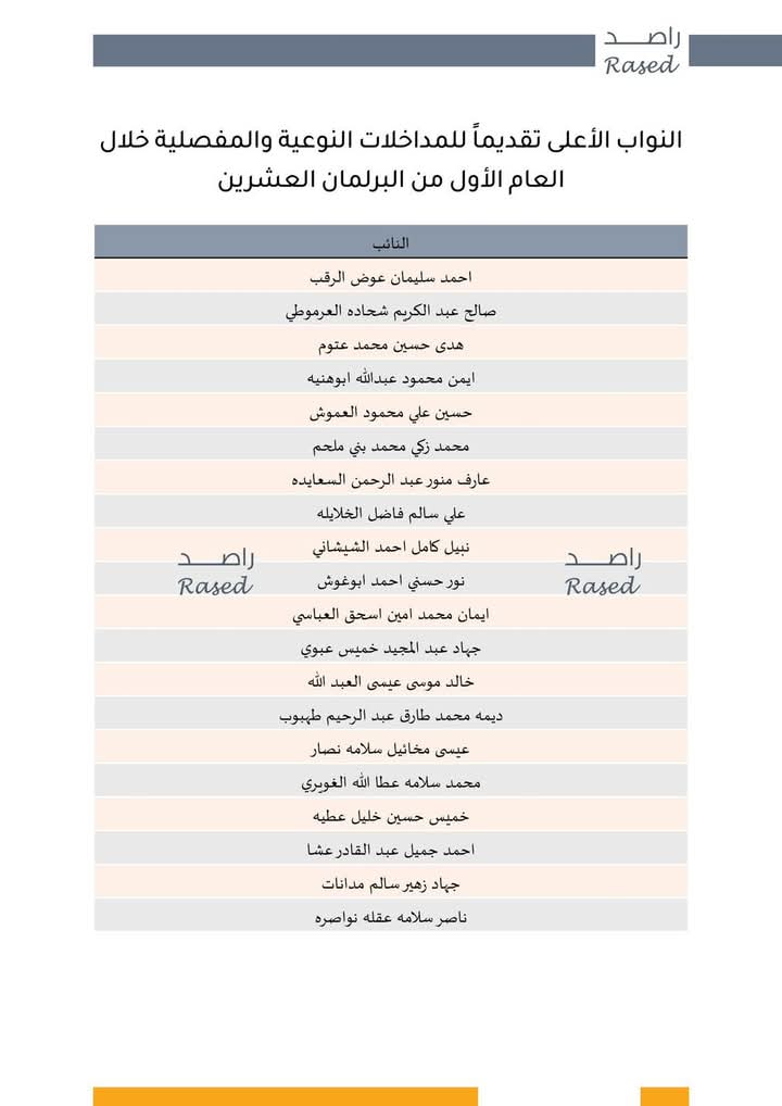 وأشار التقرير إلى ان الكرادشة كان من بين عشرين نائبا هم الأعلى في عدد المداخلات والمشاركات خلال الجلسات العامة، ما يعكس حضوره الفاعل ومتابعته الدؤوبة لمختلف القضايا الوطنية والرقابية والتشريعية التي نوقشت في المجلس.