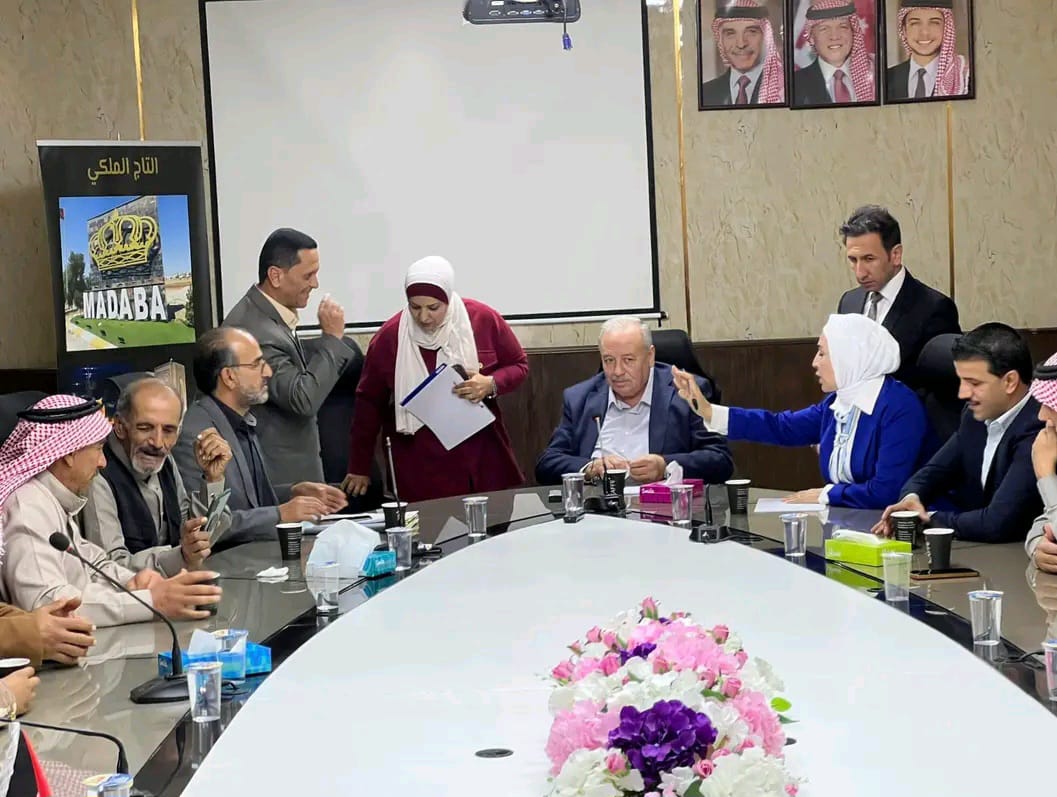 ضمن جولة ميدانية لسعادة النائب نجمة الهواوشة يوم امس لبحث احتياجات التجار وأصحاب سوق الحلال مادبا، برفقة عدد من التجار وممثلي السوق، حيث التقت اليوم برئيس البلدية والمهندسين المسؤولين في البلدية ومندرب صحيفة روافد الاردن الاخبارية احمد الازايدة.