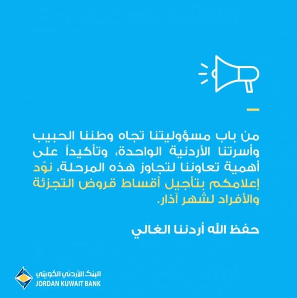 الاردني الكويتي يؤجل اقساط قروض التجزئة والأفراد