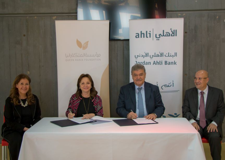 البنك الأهلي الأردني ومؤسسة الملكة رانيا للتعليم والتنمية توقعان اتفاقية شراكة لدعم التعليم في الأردن