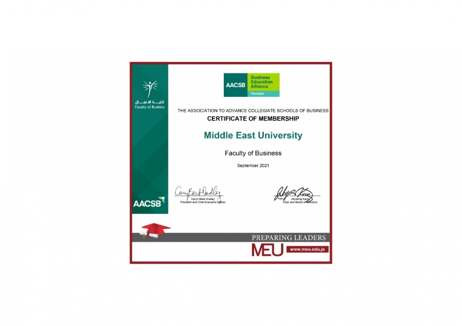 • كلية الأعمال في جامعة الشرق الأوسط MEU تحصل على عضوية "AACSB" الكاملة