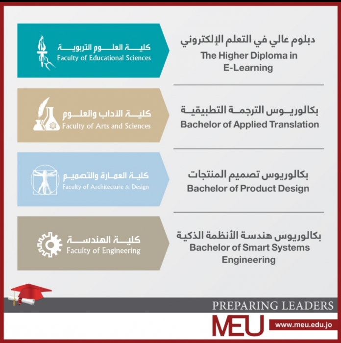 جامعة الشرق الأوسط MEU تستحدث ثلاثة تخصصات بكالوريوس وتخصص دبلوم عالي
