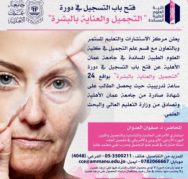 مركز الاستشارات في عمان الاهلية يعلن عن فتح باب التسجيل في دورة التجميل والعناية بالبشرة