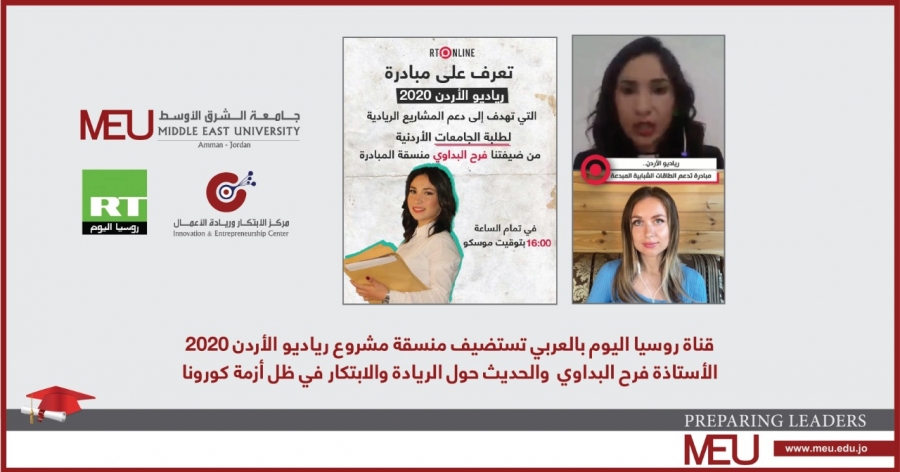البداوي لـ"قناة روسيا اليوم": مركز ريادة الأعمال في جامعة الشرق الأوسط يدعم الشباب الأردني لتأسيس شركاتهم الريادية