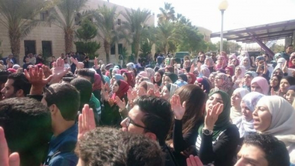 طلبة الهاشمية يعتصمون احتجاجا على فصل الطالب عبيدات