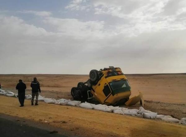 انقلاب شاحنة على الصحراوي واصابة سائقها ونفوق اغنام