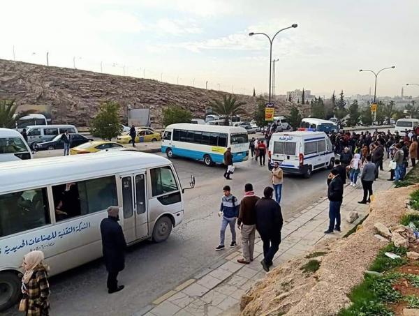 سائقو باصات يتوقفون عن العمل في الزرقاء والسلط (صور)