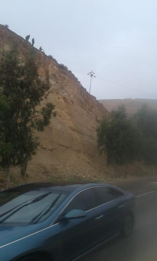 انهيارات صخرية واتربة على طريق جرش - عمان